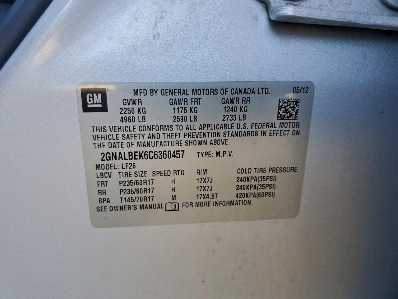 2012 CHEVROLET EQUINOX LT