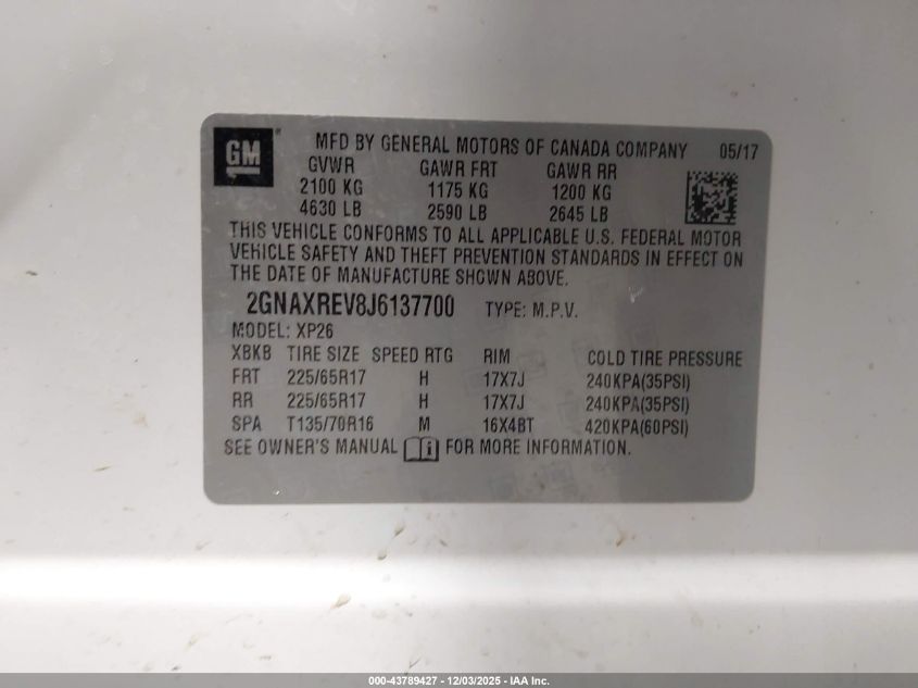 2018 CHEVROLET EQUINOX 2018 року Бензин, 1.5, Полный привод, vin - 2GNAXREV8J6137700 из США