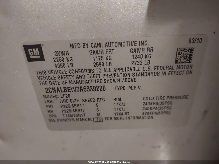 2010 CHEVROLET EQUINOX 2010 року Бензин, 2.4, Передний привод, vin - 2CNALBEW7A6339220 из США