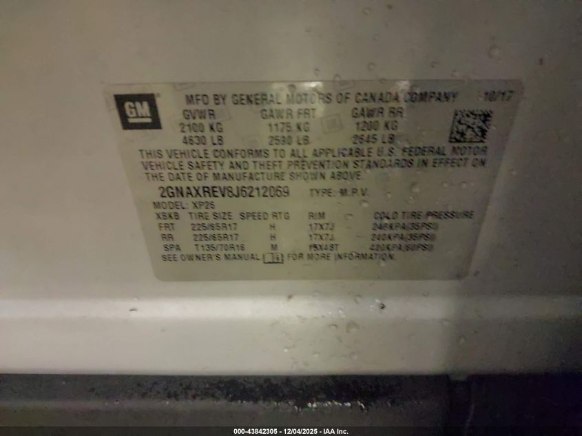 2018 CHEVROLET EQUINOX 2018 року Бензин, 1.5, Полный привод, vin - 2GNAXREV8J6212069 из США