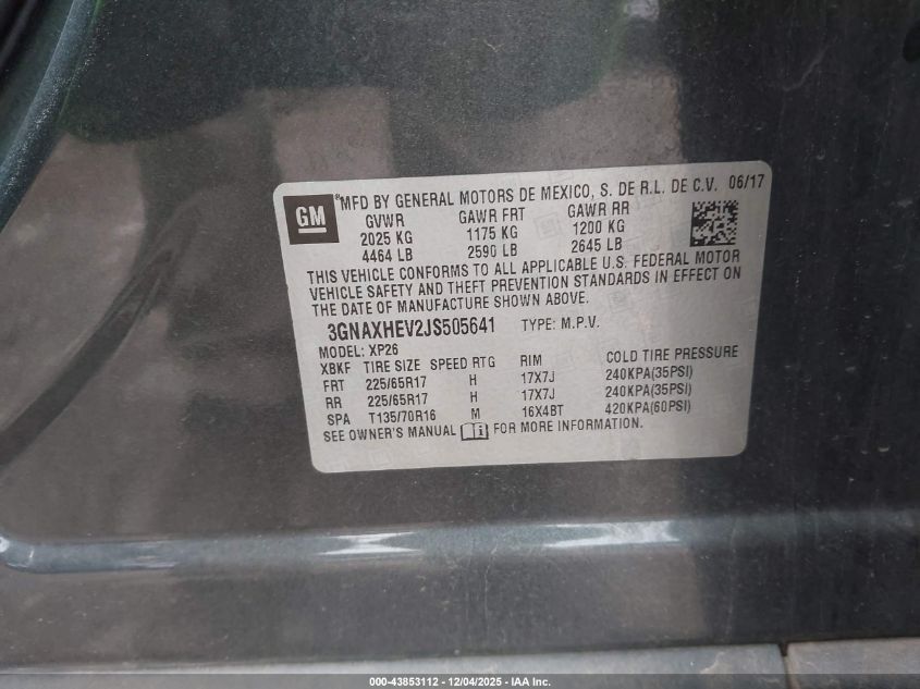 2018 CHEVROLET EQUINOX 2018 року Бензин, 1.5, Передний привод, vin - 3GNAXHEV2JS505641 из США
