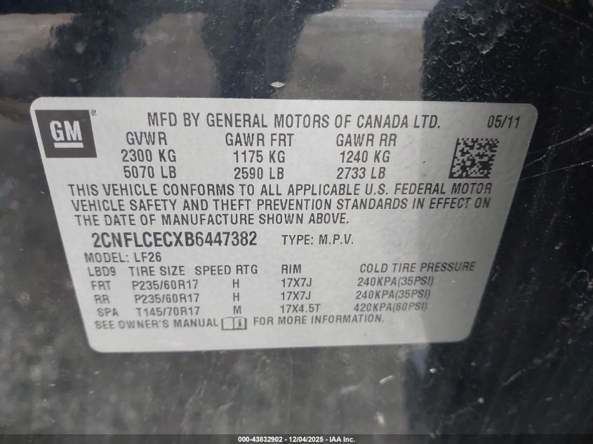 2011 CHEVROLET EQUINOX 2011 року Бензин, 2.4, Полный привод, vin - 2CNFLCECXB6447382 из США