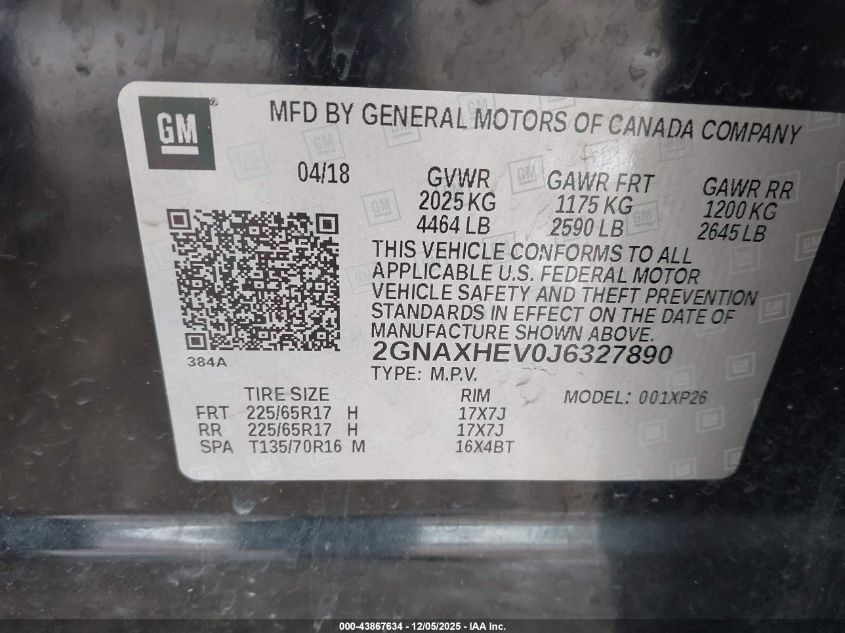 2018 CHEVROLET EQUINOX 2018 року Бензин, 1.5, Передний привод, vin - 2GNAXHEV0J6327890 из США