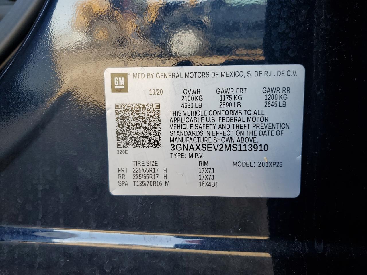 2021 CHEVROLET EQUINOX 2021 року Бензин, 1.5, Полный привод, vin - 3GNAXSEV2MS113910 из США