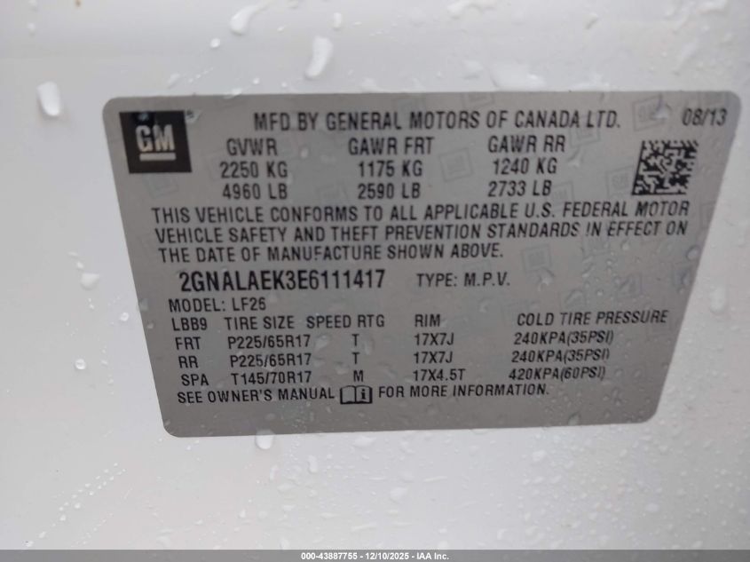 Цвет БелыйЦилиндры 4Привод Передний приводVIN 2GNALAEK3E6111417Состояние Заводится и едет (проверено)Повреждения Передняя или задняя AutoRIA