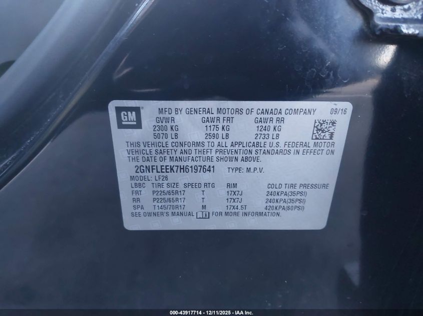 2017 CHEVROLET EQUINOX 2017 року Бензин, 2.4, Полный привод, vin - 2GNFLEEK7H6197641 из США