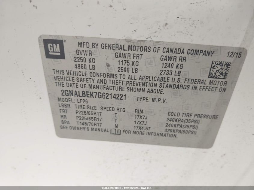 2016 CHEVROLET EQUINOX 2016 року Бензин, 2.4, Передний привод, vin - 2GNALBEK7G6214221 из США