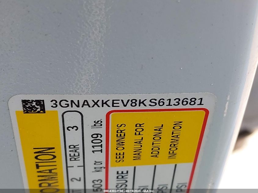 2019 CHEVROLET EQUINOX 2019 року Бензин, 1.5, Передний привод, vin - 3GNAXKEV8KS613681 из США