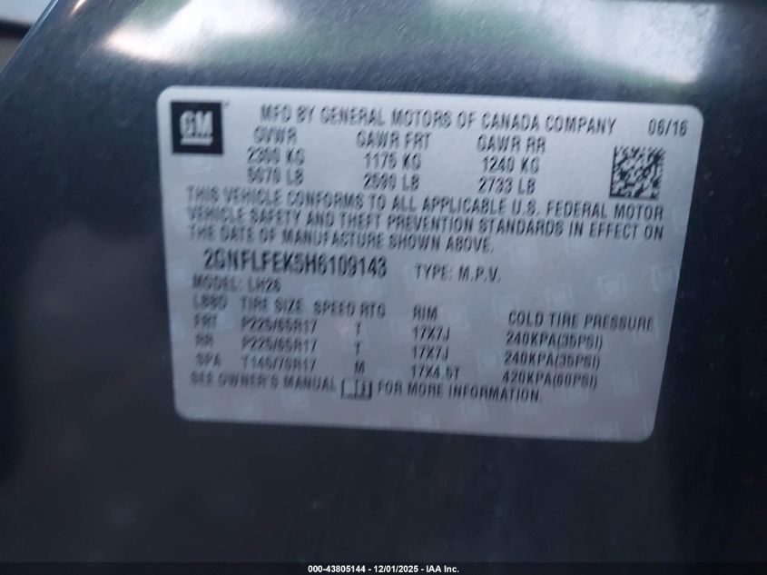 2017 CHEVROLET EQUINOX 2017 року Бензин, 2.4, Полный привод, vin - 2GNFLFEK5H6109143 из США