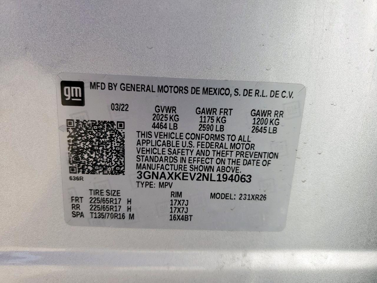 2022 CHEVROLET EQUINOX 2022 року Бензин, 1.5, , vin - 3GNAXKEV2NL194063 из США