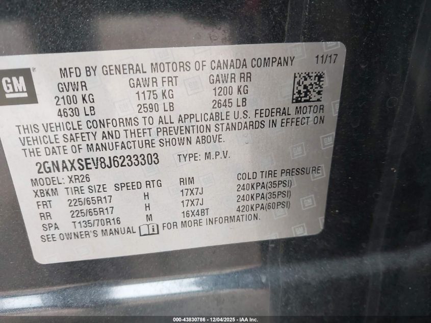 Цвет СерыйЦилиндры 4Привод Полный приводVIN 2GNAXSEV8J6233303Состояние Заводится и едет (проверено)Повреждения Передняя и задняя AutoRIA