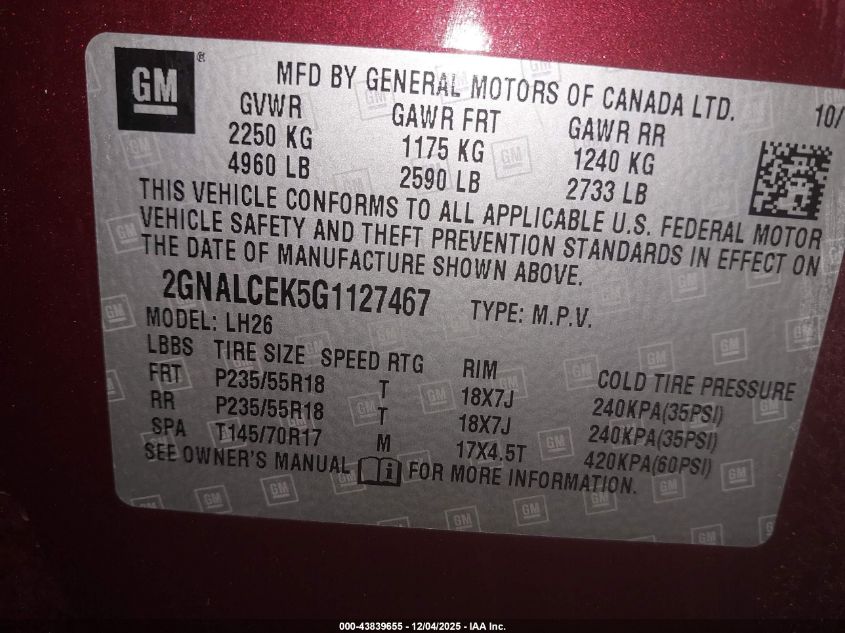 Цвет КрасныйЦилиндры 4Привод Передний приводVIN 2GNALCEK5G1127467Состояние Заводится и едет (проверено)Повреждения Передняя или задняя AutoRIA