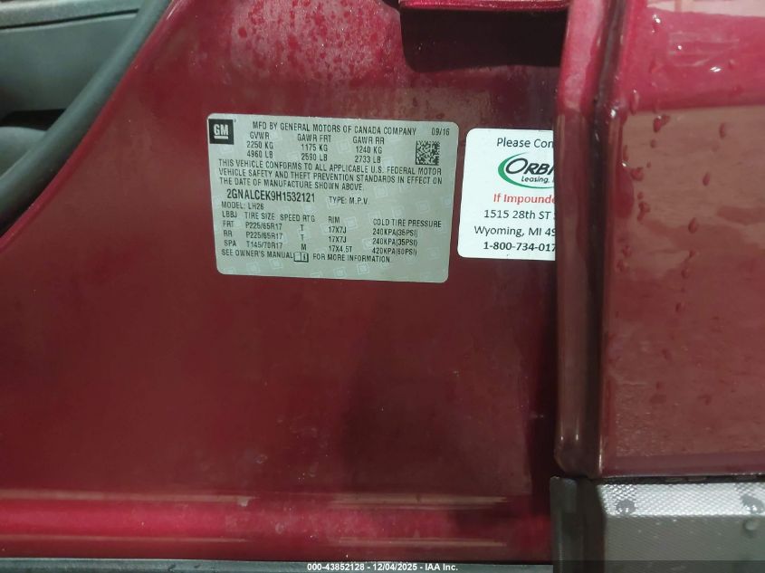 2017 CHEVROLET EQUINOX 2017 року Бензин, 2.4, Передний привод, vin - 2GNALCEK9H1532121 из США