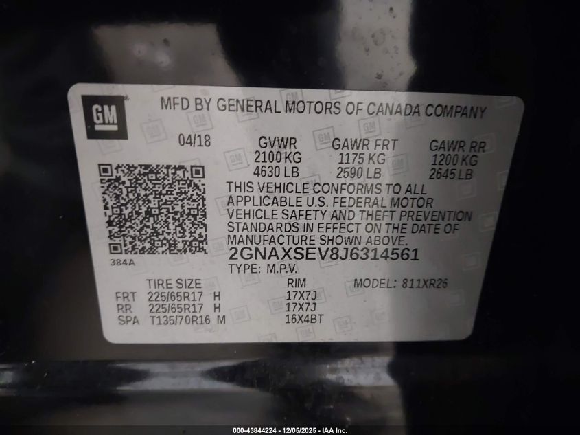 2018 CHEVROLET EQUINOX 2018 року Бензин, 1.5, Полный привод, vin - 2GNAXSEV8J6314561 из США