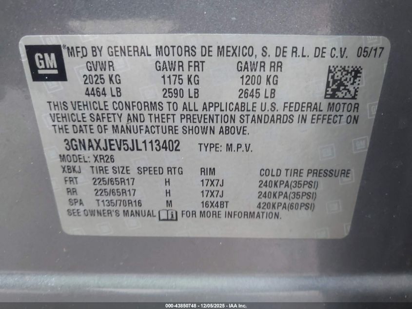 2018 CHEVROLET EQUINOX 2018 року Бензин, 1.5, Передний привод, vin - 3GNAXJEV5JL113402 из США