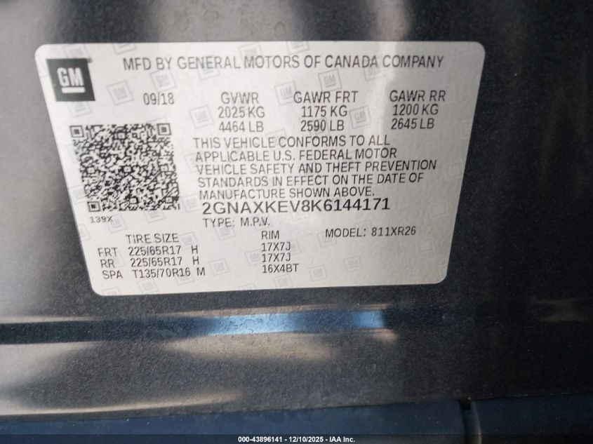 2019 CHEVROLET EQUINOX 2019 року Бензин, 1.5, Передний привод, vin - 2GNAXKEV8K6144171 из США