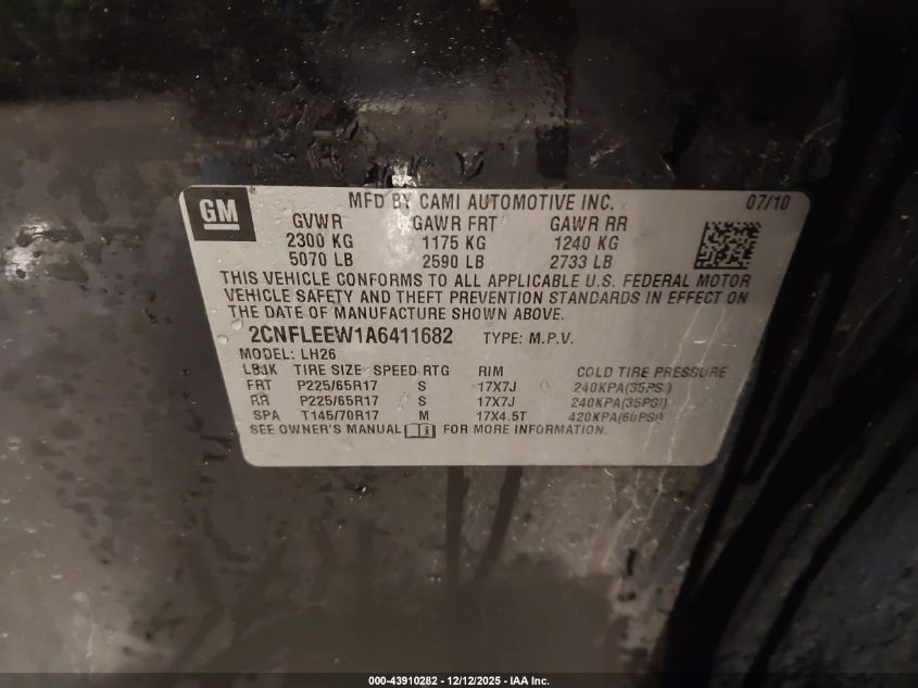 2010 CHEVROLET EQUINOX 2010 року Бензин, 2.4, Полный привод, vin - 2CNFLEEW1A6411682 из США