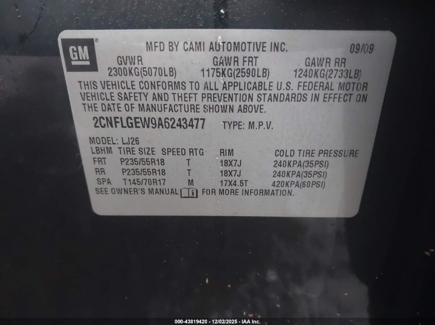 2010 CHEVROLET EQUINOX 2010 року Бензин, 2.4, Полный привод, vin - 2CNFLGEW9A6243477 из США