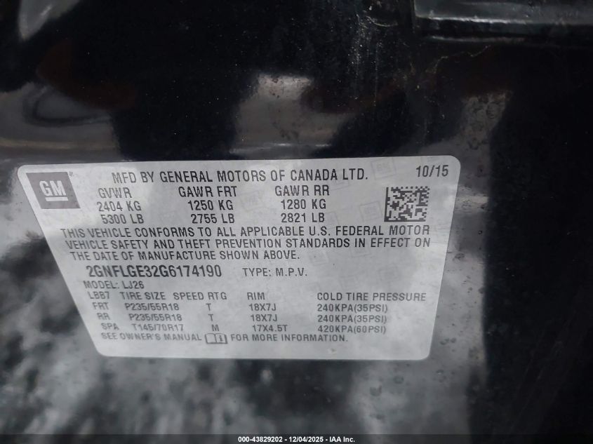 2016 CHEVROLET EQUINOX 2016 року Бензин, 3.6, Полный привод, vin - 2GNFLGE32G6174190 из США