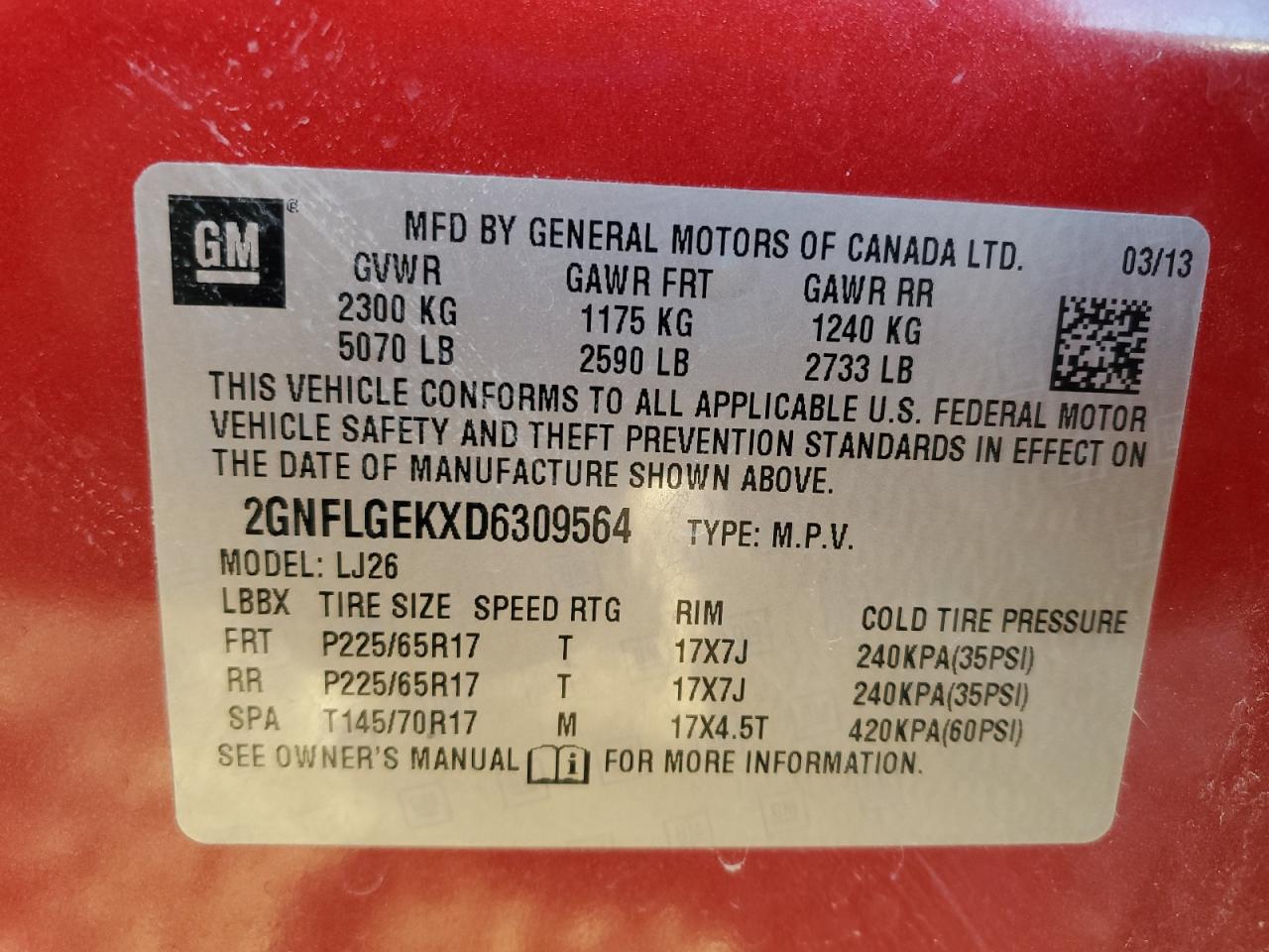 Цвет КрасныйЦилиндры 4Привод Полный приводVIN 2GNFLGEKXD6309564Состояние Заводится и едет (проверено)Повреждения Передняя или задняя AutoRIA