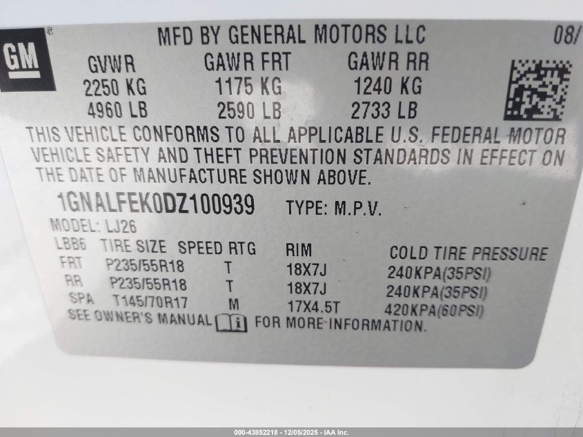 Цвет БелыйЦилиндры 4Привод Передний приводVIN 1GNALFEK0DZ100939Состояние Заводится и едет (проверено)Повреждения Передняя правая AutoRIA