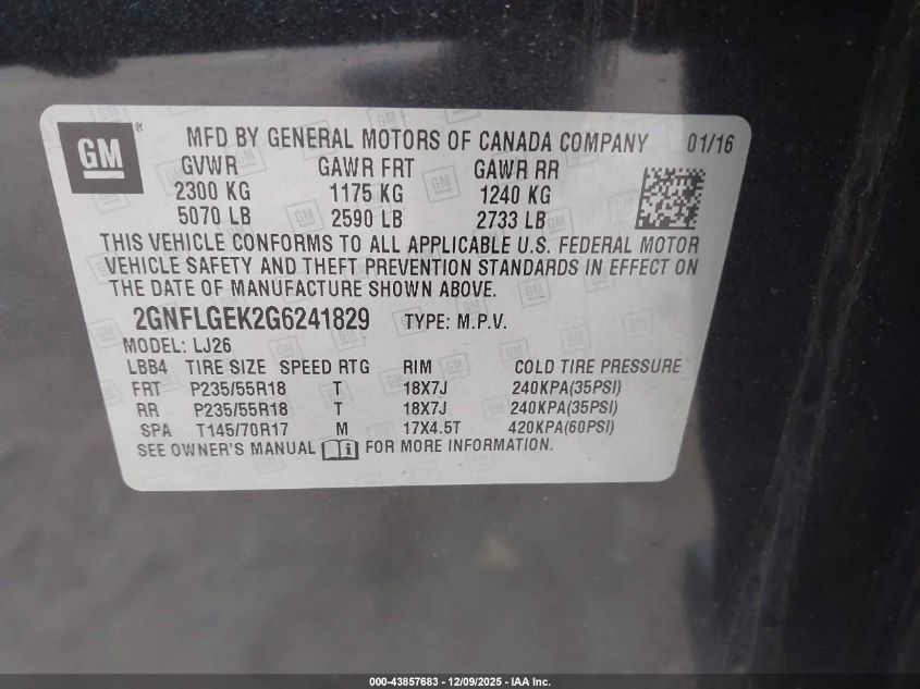 Цвет ЧерныйЦилиндры 4Привод Полный приводVIN 2GNFLGEK2G6241829Состояние СтационарноПовреждения Передняя или задняя AutoRIA