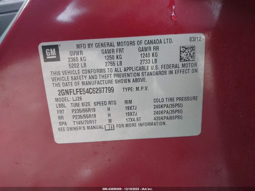 Цвет КрасныйЦилиндры 6Привод Передний приводVIN 2GNFLFE54C6297799Состояние Заводится и едет (проверено)Повреждения Передняя или задняя AutoRIA