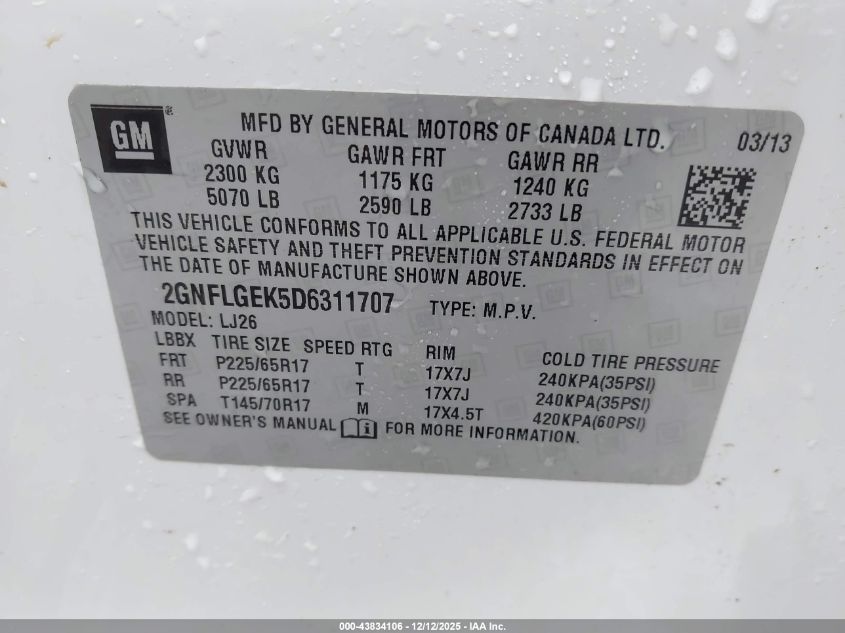 Цвет БелыйЦилиндры 4Привод Полный приводVIN 2GNFLGEK5D6311707Состояние Заводится и едет (проверено)Повреждения Передняя или задняя AutoRIA