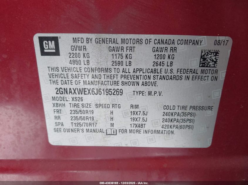 2018 CHEVROLET EQUINOX 2018 року Бензин, 2.0, Полный привод, vin - 2GNAXWEX6J6195269 из США