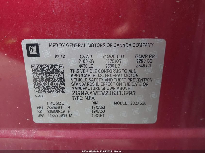 2018 CHEVROLET EQUINOX 2018 року Бензин, 1.5, Полный привод, vin - 2GNAXVEV2J6313293 из США