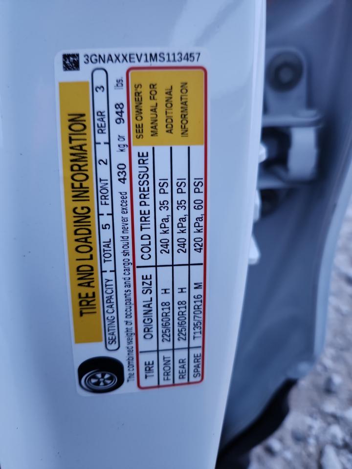 2021 CHEVROLET EQUINOX 2021 року Бензин, 1.5, Полный привод, vin - 3GNAXXEV1MS113457 из США