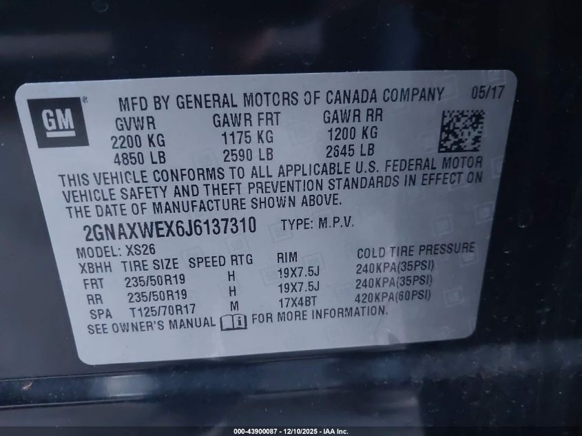 2018 CHEVROLET EQUINOX 2018 року Бензин, 2.0, Полный привод, vin - 2GNAXWEX6J6137310 из США