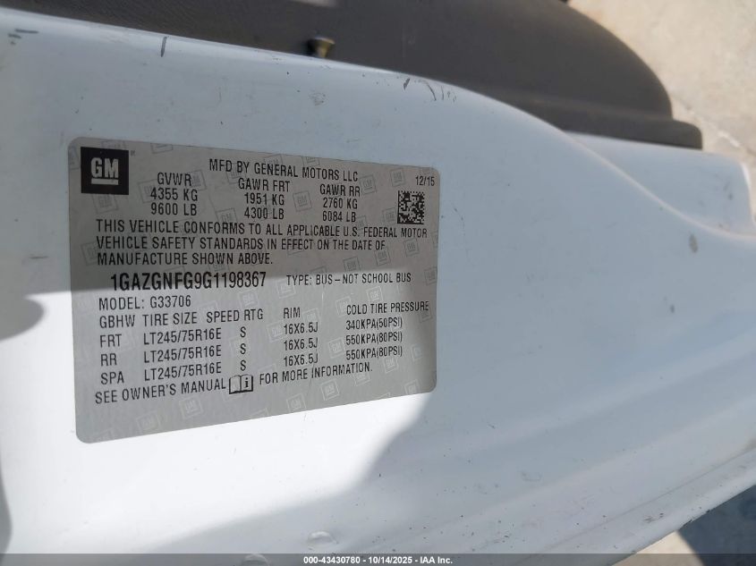 2016 CHEVROLET EXPRESS 2016 року Бензин, 6.0, Задний привод, vin - 1GAZGNFG9G1198367 из США