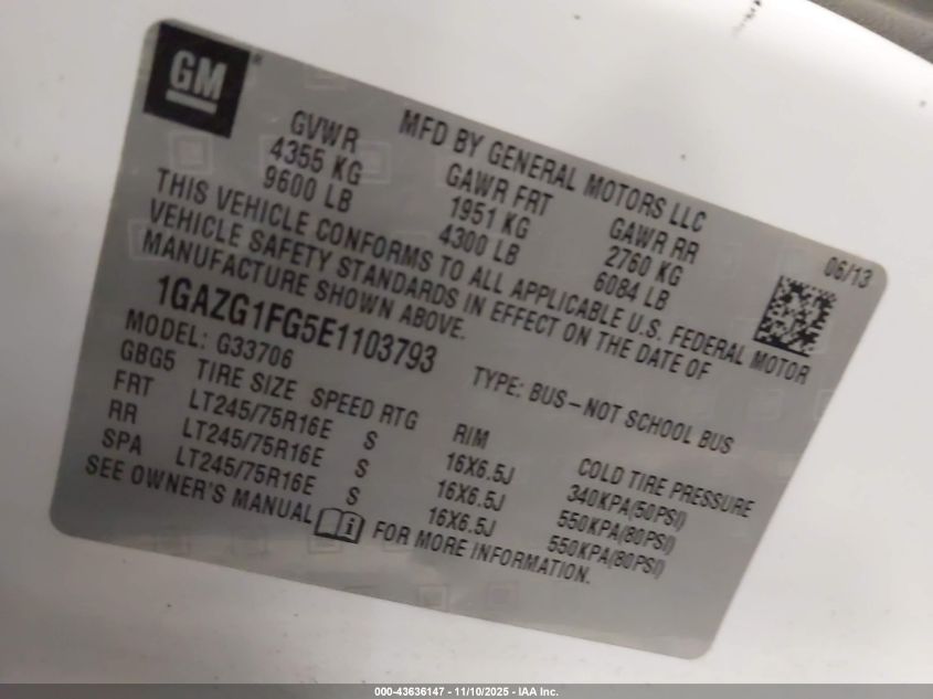 2014 CHEVROLET EXPRESS 2014 року Бензин, 6.0, Задний привод, vin - 1GAZG1FG5E1103793 из США