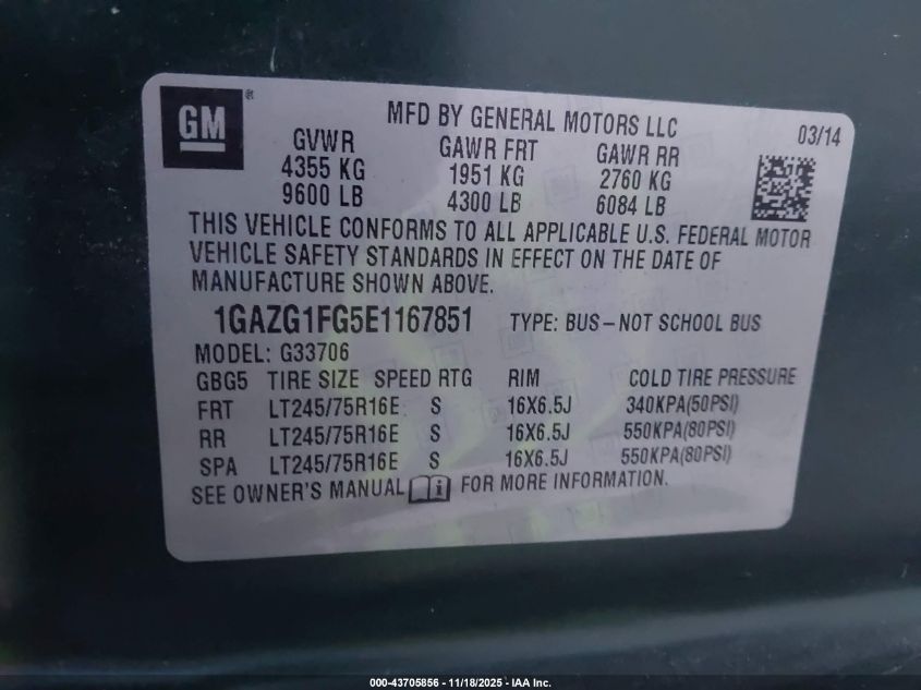 2014 CHEVROLET EXPRESS 2014 року Бензин, 6.0, Задний привод, vin - 1GAZG1FG5E1167851 из США