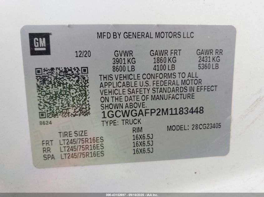 2021 CHEVROLET EXPRESS 2021 року Бензин, 4.3, Задний привод, vin - 1GCWGAFP2M1183448 из США