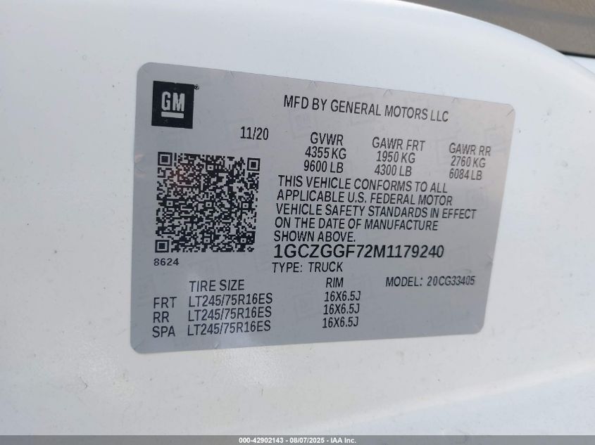 2021 CHEVROLET EXPRESS 2021 року Бензин, 6.6, Задний привод, vin - 1GCZGGF72M1179240 из США