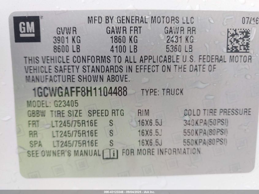 2017 CHEVROLET EXPRESS 2017 року Бензин, 4.8, Задний привод, vin - 1GCWGAFF8H1104488 из США