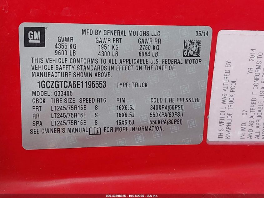 Цвет КрасныйЦилиндры 8Привод Задний приводVIN 1GCZGTCA6E1196553Состояние Заводится и едет (проверено)Повреждения Правая сторонаДата аукциона 2025-12-10 AutoRIA