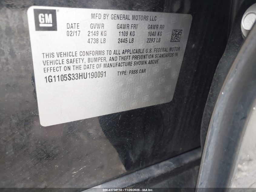 2017 CHEVROLET IMPALA 2017 року Бензин, 3.6, Передний привод, vin - 1G1105S33HU190091 из США