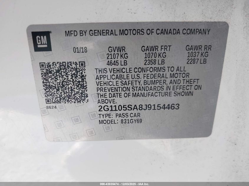 2018 CHEVROLET IMPALA 2018 року Бензин, 2.5, Передний привод, vin - 2G1105SA8J9154463 из США