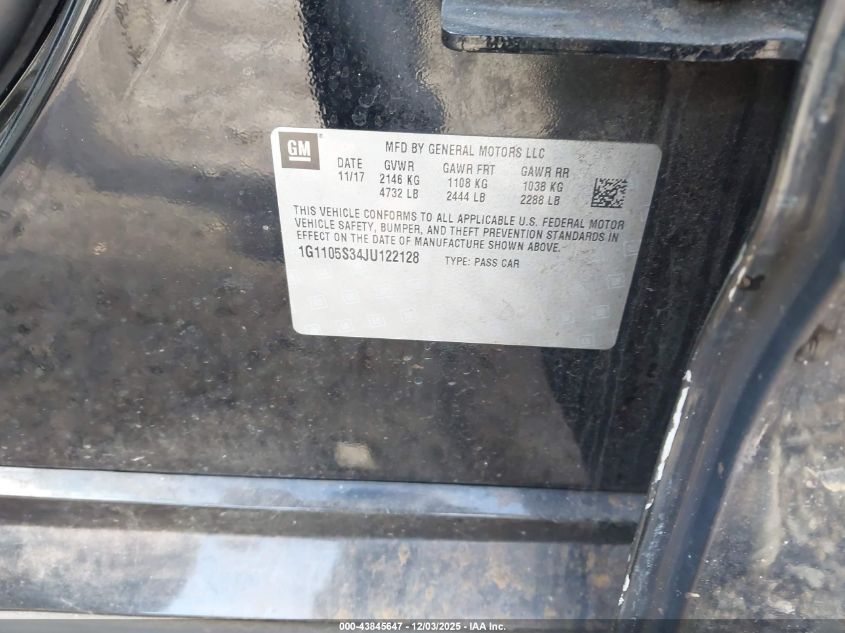 2018 CHEVROLET IMPALA 2018 року Бензин, 3.6, Передний привод, vin - 1G1105S34JU122128 из США