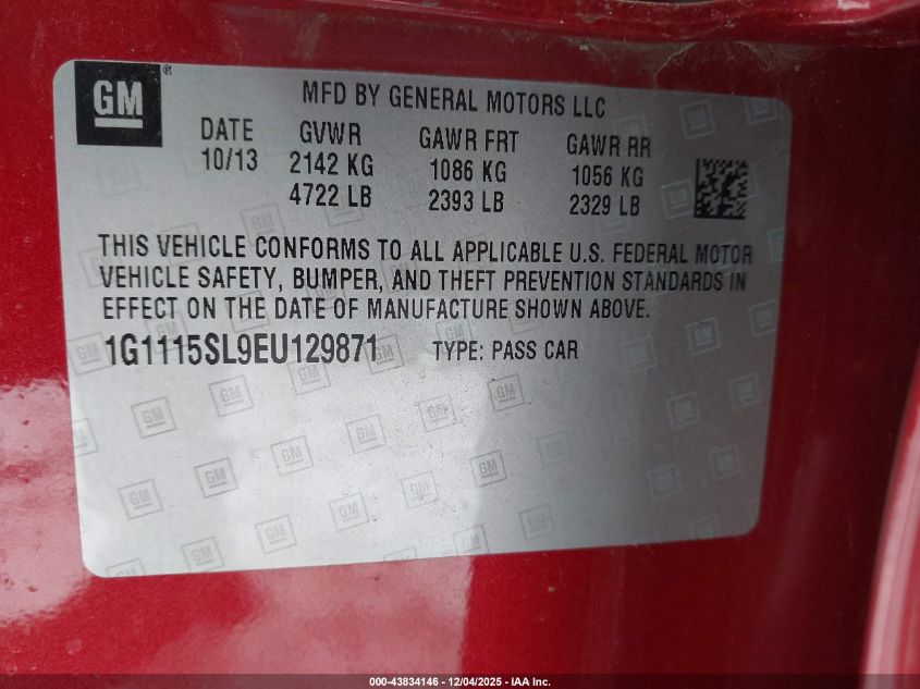2014 CHEVROLET IMPALA 2014 року Бензин, 2.5, Передний привод, vin - 1G1115SL9EU129871 из США