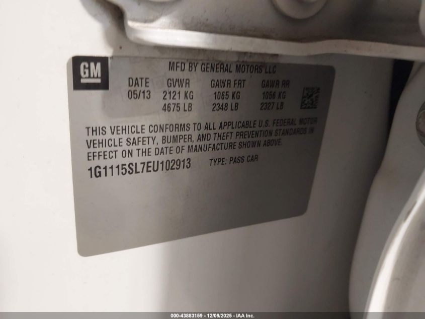 Цвет БелыйЦилиндры 4Привод Передний приводVIN 1G1115SL7EU102913Состояние Заводится и едет (проверено)Повреждения Передняя или задняя AutoRIA