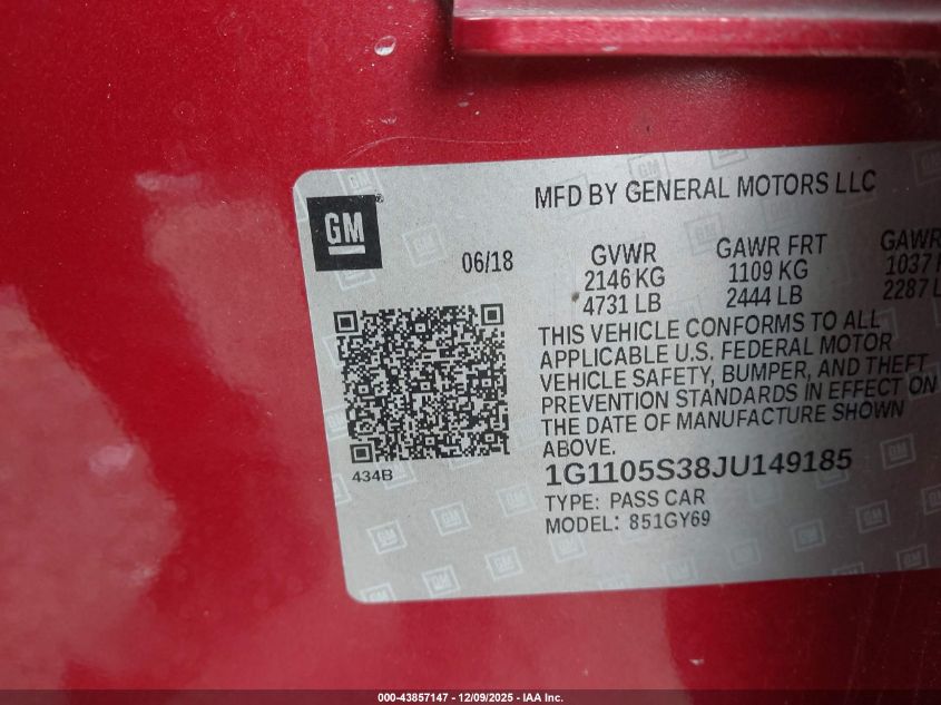 Цвет КрасныйЦилиндры 6Привод Передний приводVIN 1G1105S38JU149185Состояние Заводится и едет (проверено)Повреждения Передняя или задняя AutoRIA