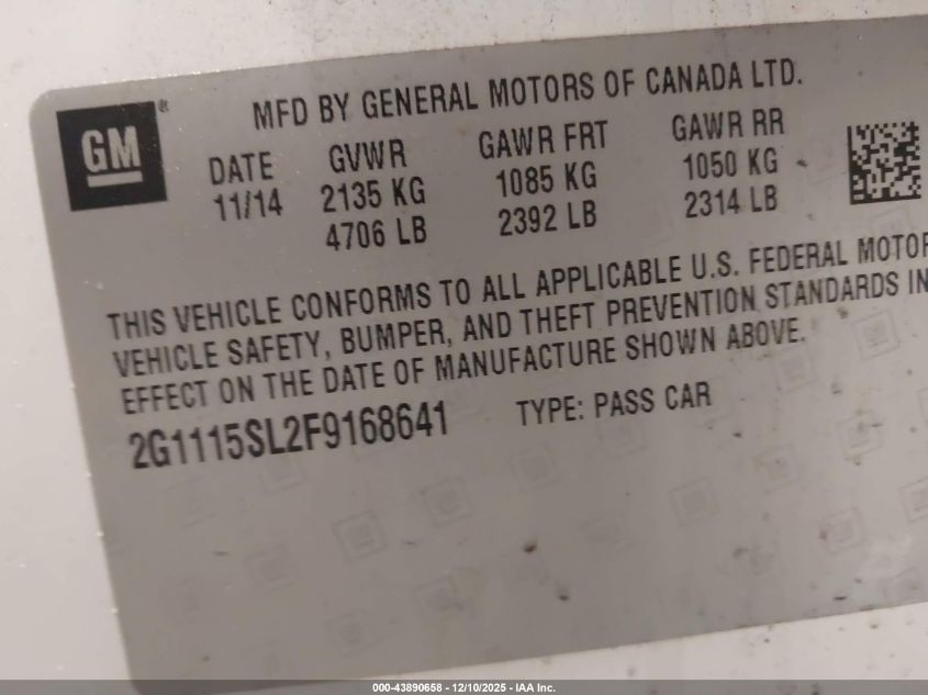 2015 CHEVROLET IMPALA 2015 року Бензин, 2.5, Передний привод, vin - 2G1115SL2F9168641 из США