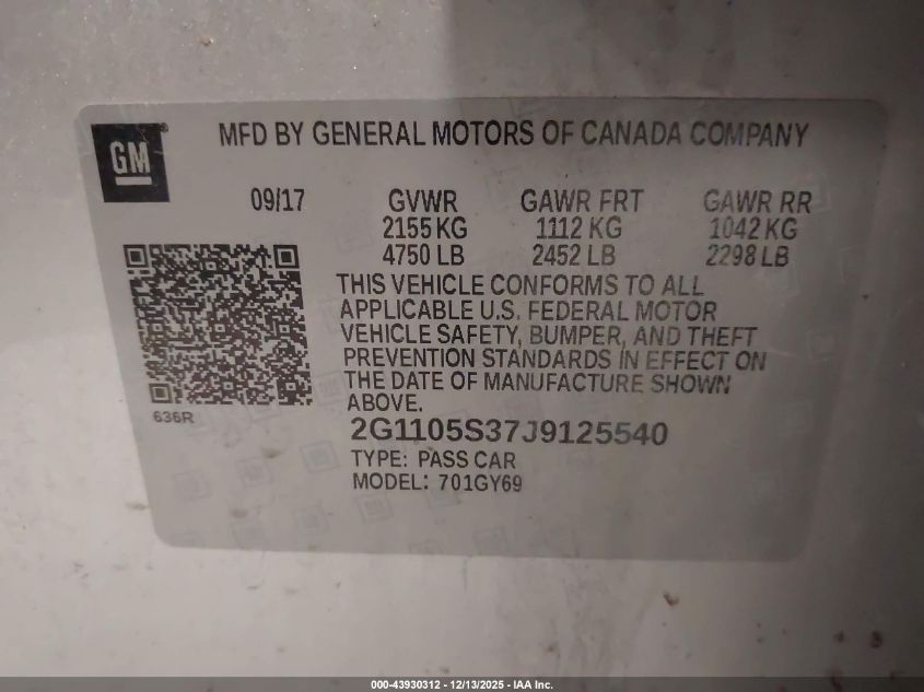 Цвет Цилиндры 6Привод Передний приводVIN 2G1105S37J9125540Состояние НеизвестноПовреждения Передняя левая AutoRIA