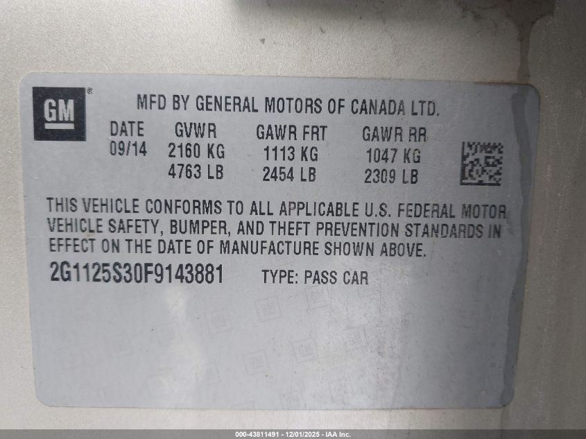 2015 CHEVROLET IMPALA 2015 року Бензин, 3.6, Передний привод, vin - 2G1125S30F9143881 из США