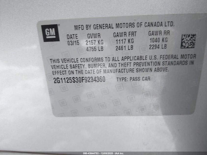 2015 CHEVROLET IMPALA 2015 року Бензин, 3.6, Передний привод, vin - 2G1125S30F9234360 из США