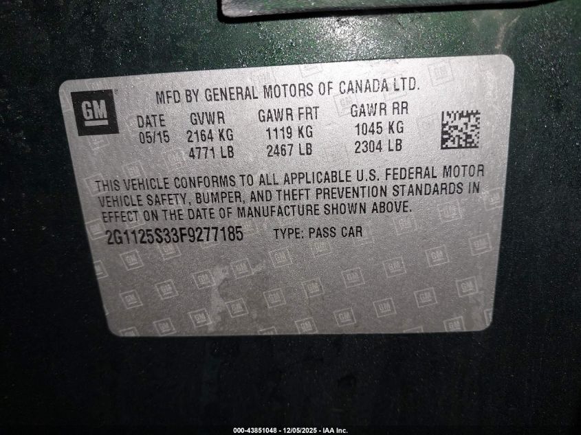 2015 CHEVROLET IMPALA 2015 року Бензин, 3.6, Передний привод, vin - 2G1125S33F9277185 из США